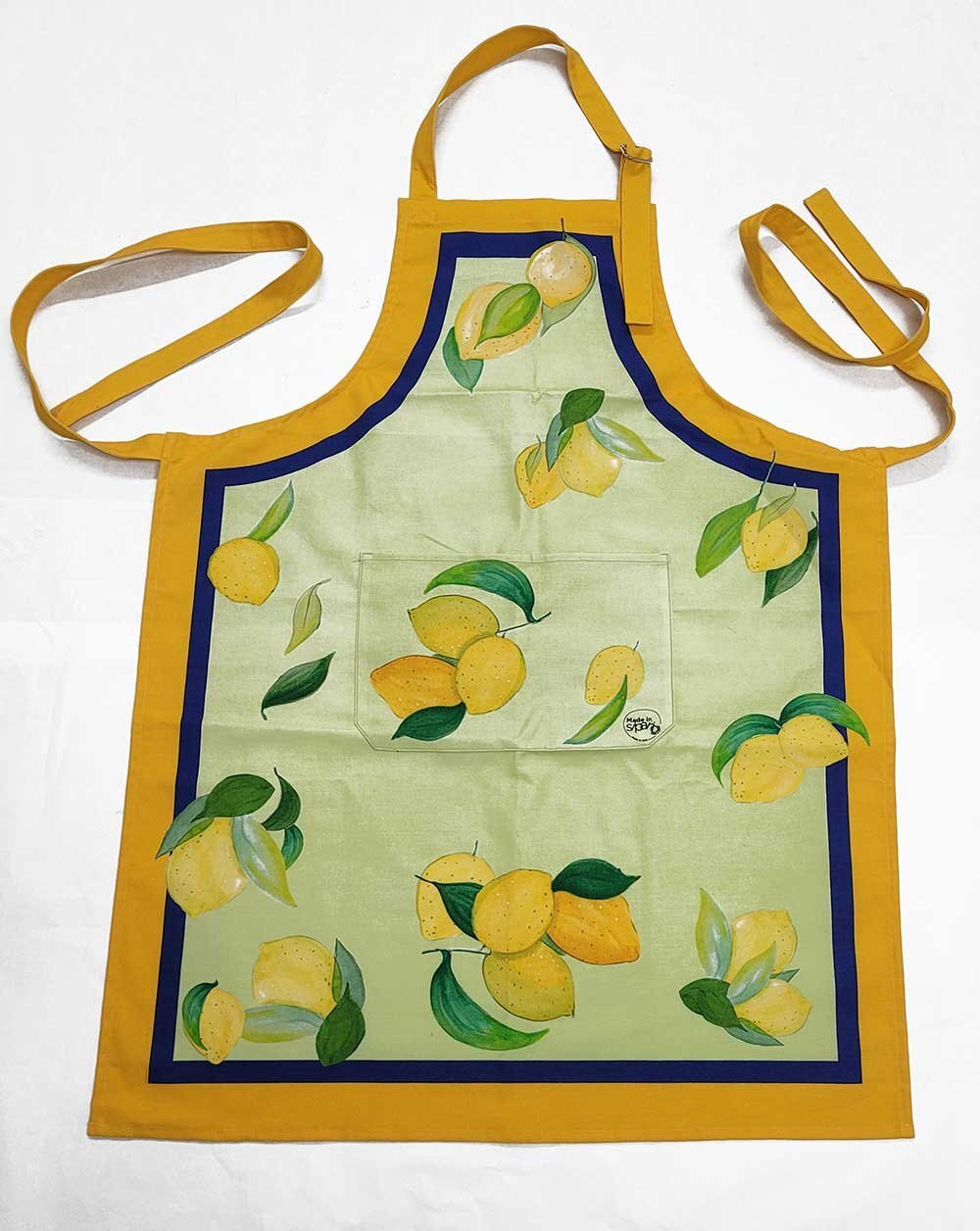 Stampato con i disegni acquerello originali dei nostri Artisti Speciali, questo accessorio cucina con tasca frontale e laccio regolabile unisce praticità e stile mediterraneo.