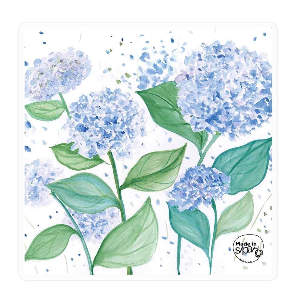 Stampati su disegno originale Made in Sipario, riproducono acquerelli delicati di fiori come tulipani, anemoni, peonie, ortensie e rose, rendendo ogni pezzo una piccola opera d’arte.