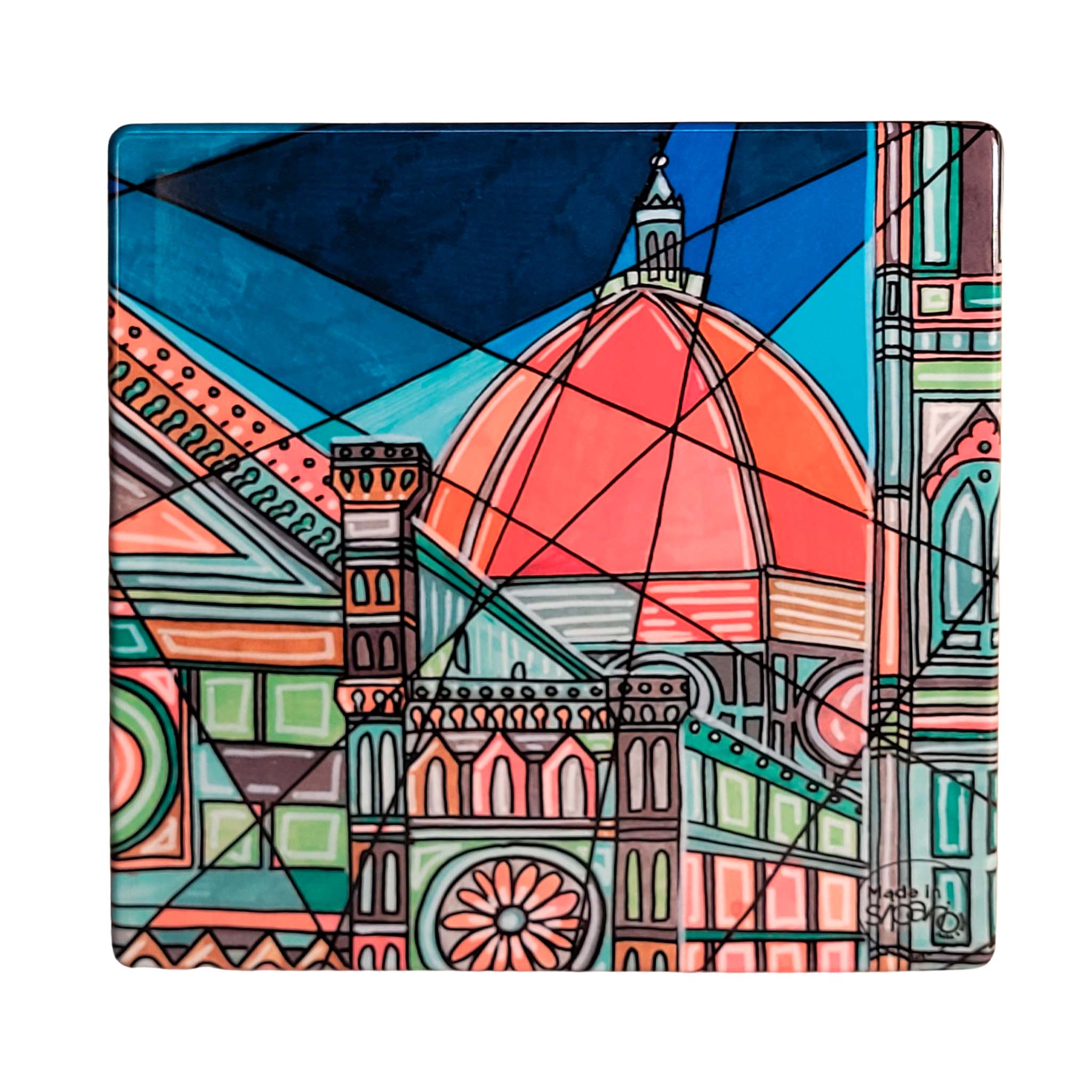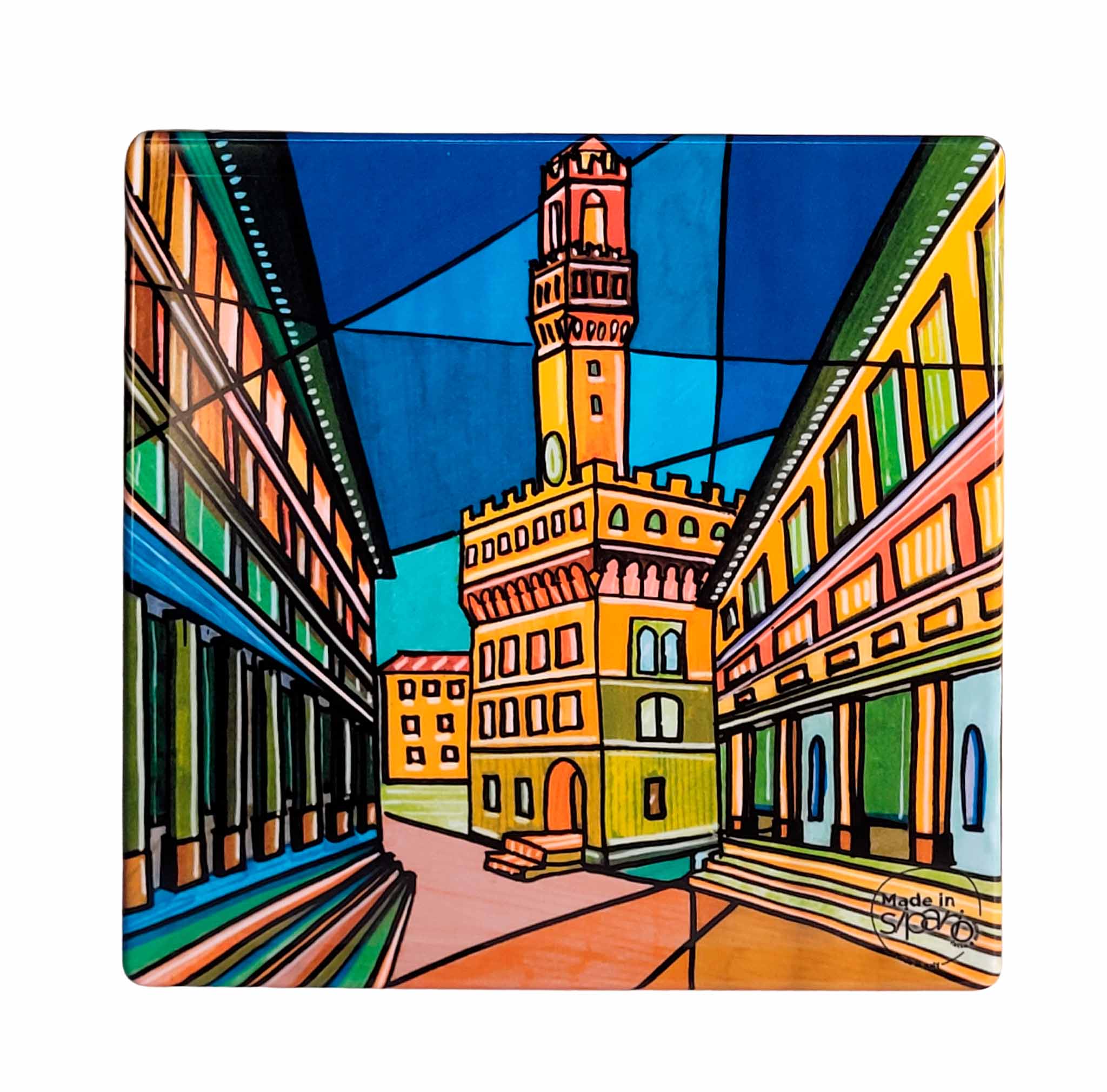 I Sottopentola quadrato Linea Firenze riproduce i celebri monumenti della città nei disegni originali dei nostri Artisti Speciali, realizzati con la tecnica dell’acquerello.