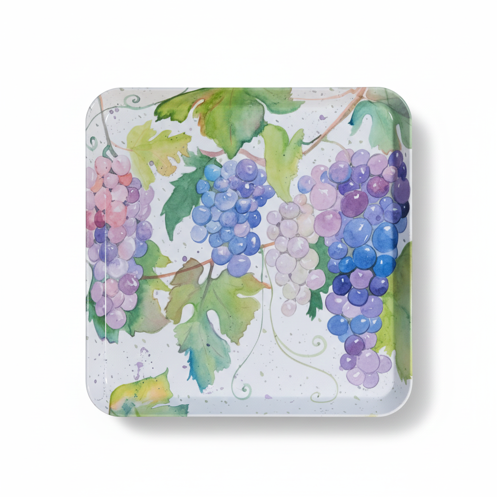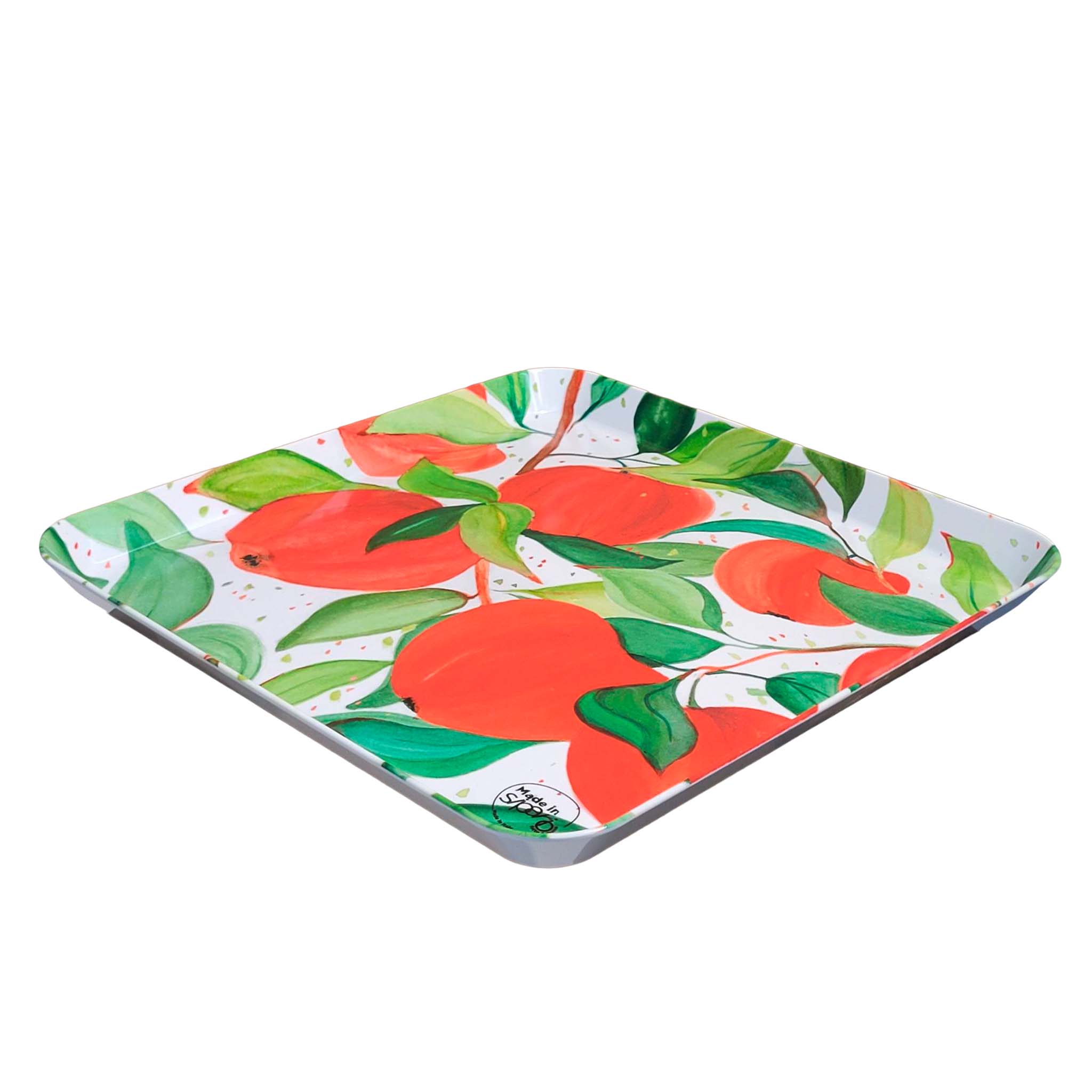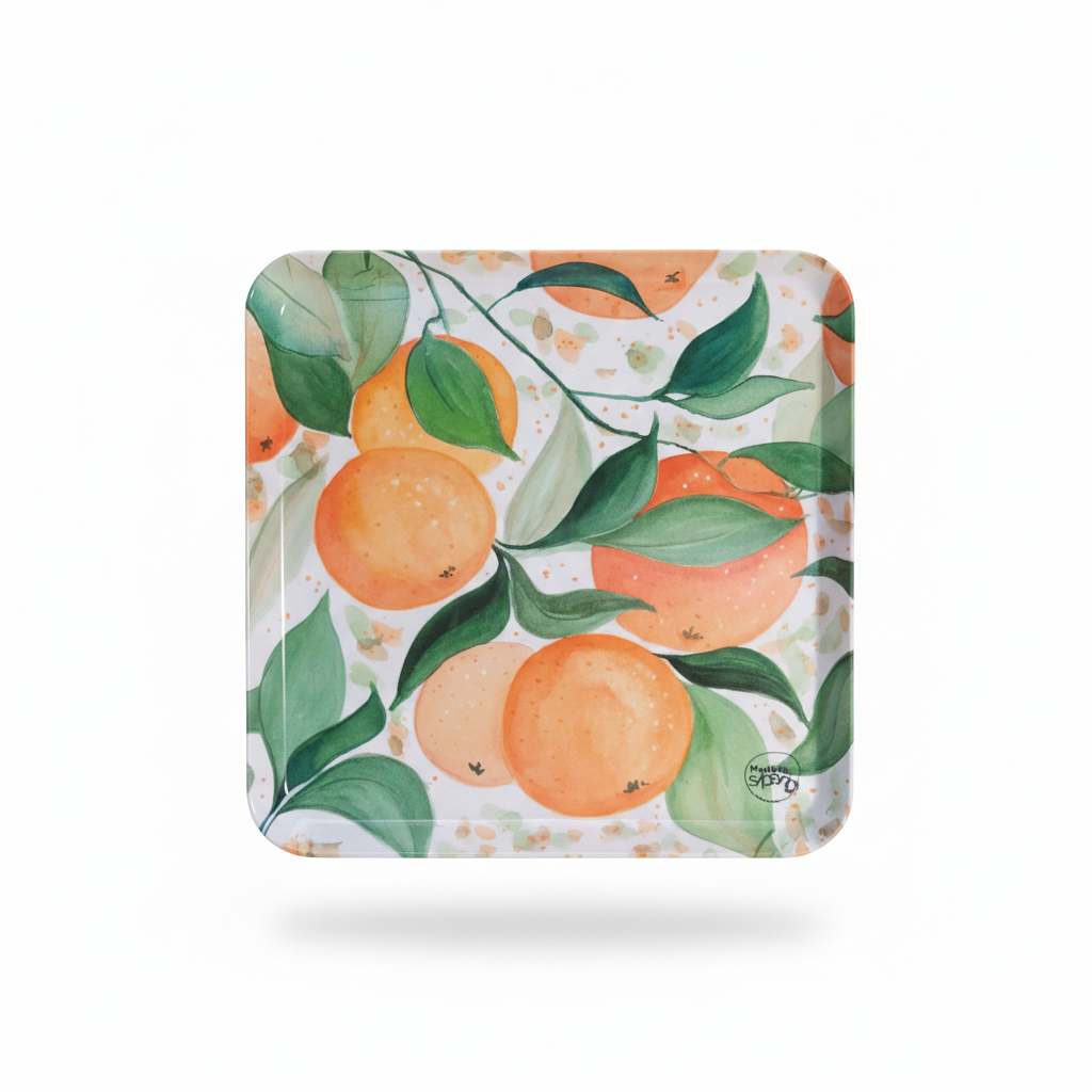 Realizzato in melamina resistente e leggera, questo vassoio unisce la bellezza dell'arte alla praticità quotidiana. La sua superficie lucida e antigraffio fa risaltare i colori vivaci della frutta, mentre i bordi rialzati garantiscono una presa sicura, rendendolo ideale per servire con eleganza bevande, antipasti o caffè.