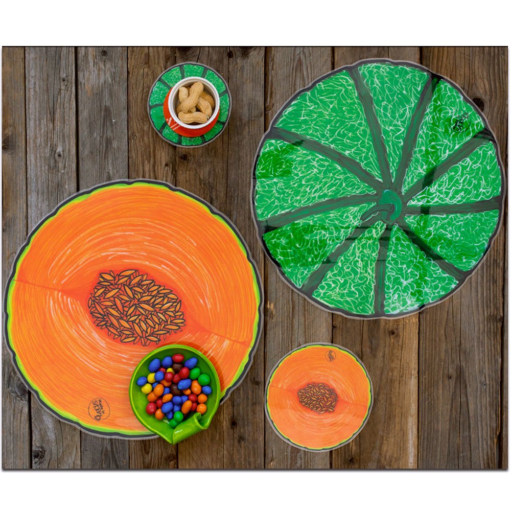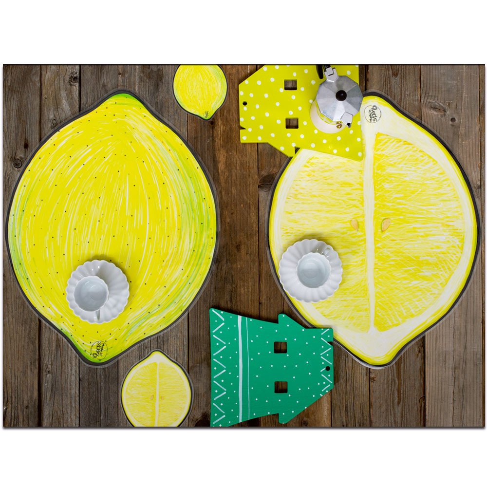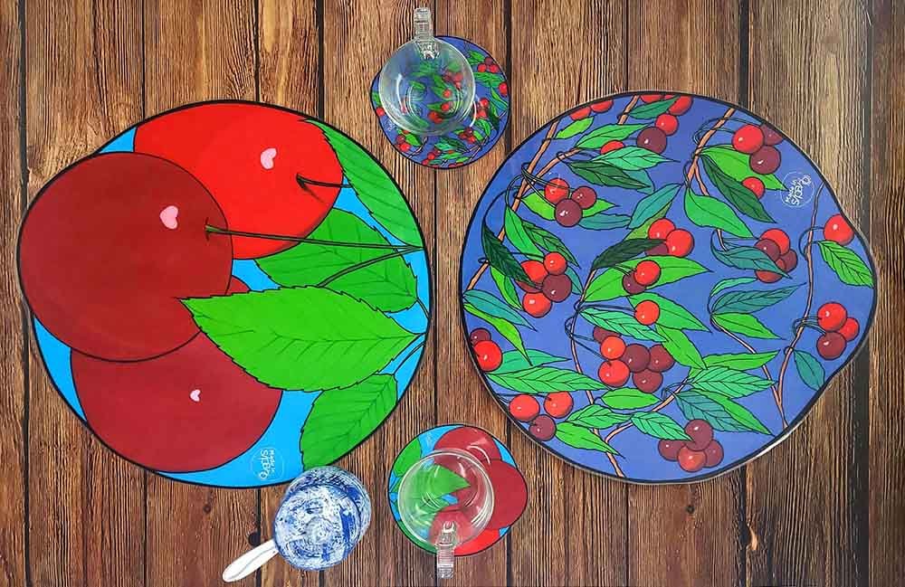 Ogni tovaglietta riproduce gli acquerelli originali realizzati dagli Artisti Speciali di Made in Sipario, con protagonisti come anguria, arance, fragole, decorati con tonalità luminose e forme morbide che seguono il profilo dei disegni.