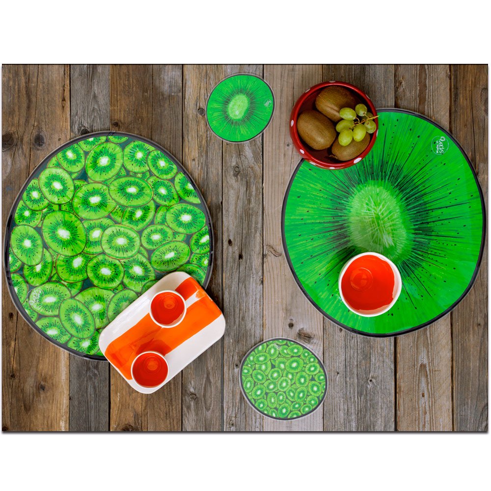 Le tovagliette sagomate della Linea Frutta portano in tavola tutta la freschezza e la vivacità dei colori naturali della frutta matura.