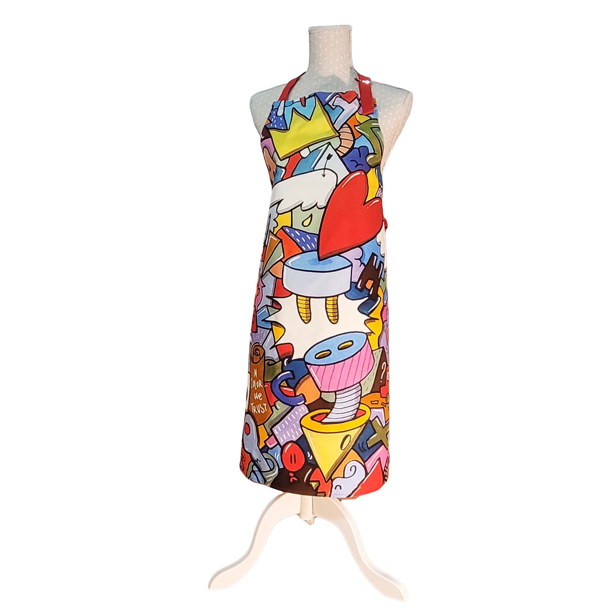 È proprio questo tocco manuale a garantire che ogni singolo grembiule sia un pezzo unico, irripetibile e portatore di una intensa esplosione di creatività. Oltre al pregio artistico, il grembiule è tagliato e cucito con meticolosa attenzione nel laboratorio di sartoria sociale, assicurando così un prodotto tessile di alta qualità e resistenza.