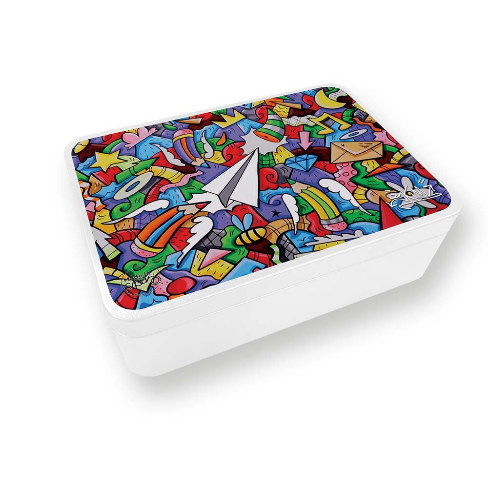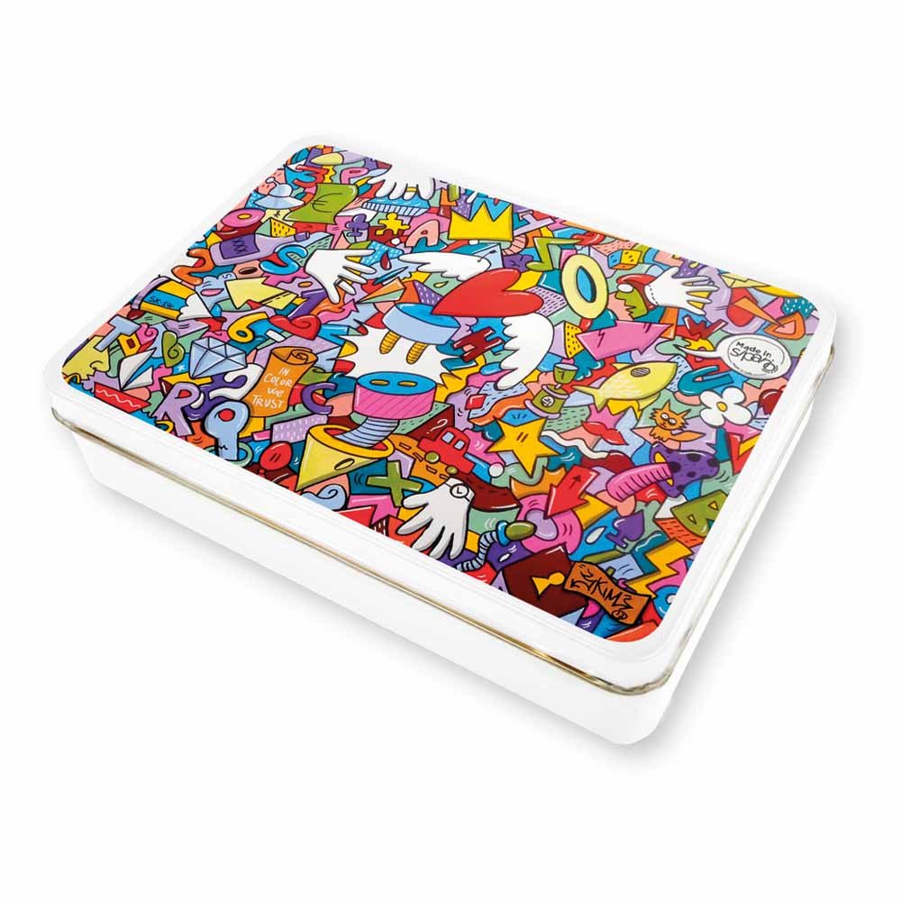 Design urbano e valore solidale si incontrano nella scatola in latta decorata della Linea SKIM, nata dalla collaborazione con l’artista SKIM (Francesco Forconi).