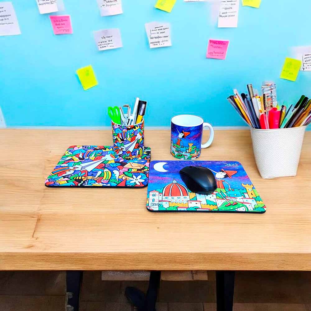 I decori originali, ottenuti tramite una stampa in sublimazione che garantisce colori vivaci e brillanti su tutta la superficie, trasformano un semplice contenitore in un vero oggetto d’arte contemporanea per la tua pausa.