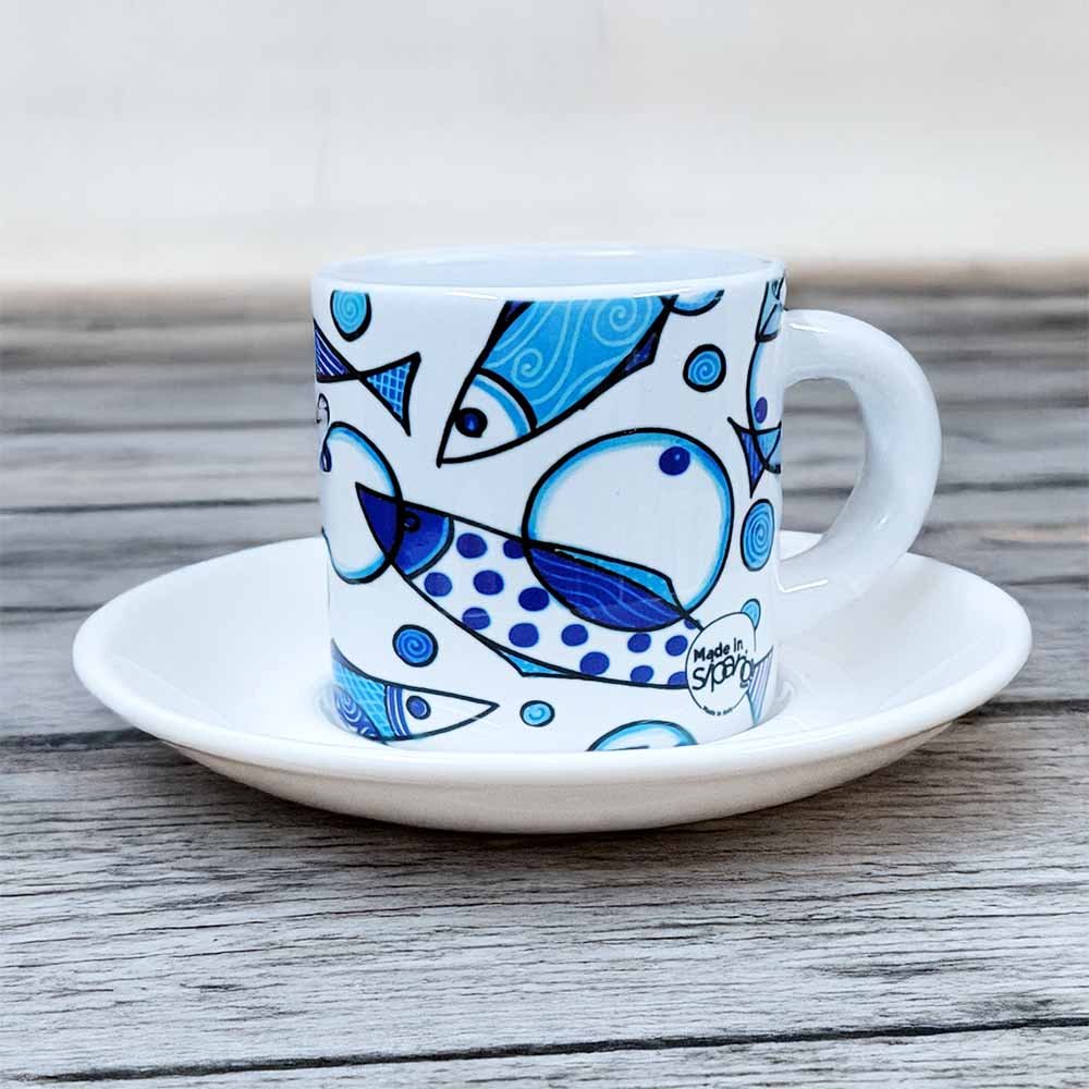 Lasciati trasportare dalle onde con la Tazzina Linea Mare, decorata con i disegni originali dei nostri Artisti Speciali e con i colori bianchi e blu.