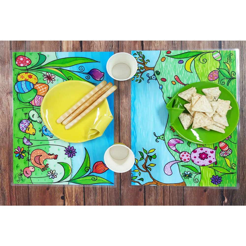 Le tovagliette rettangolari Linea Pasqua celebrano la primavera e la rinascita con motivi naturalistici, vivaci e colorati.