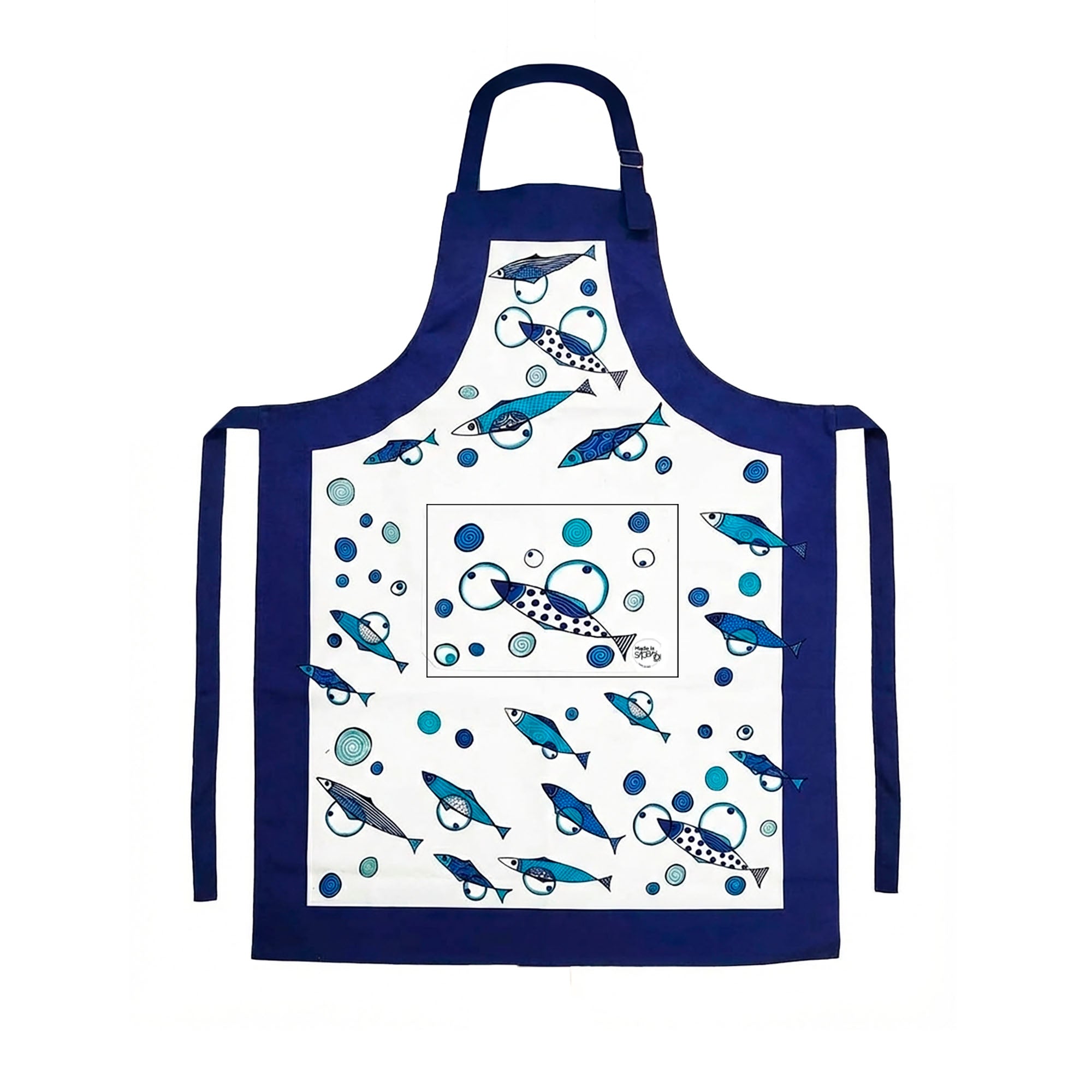Un tocco di allegria e colore nella tua cucina con il grembiule della Linea Mare, decorato con la simpatica fantasia Acciughe.
