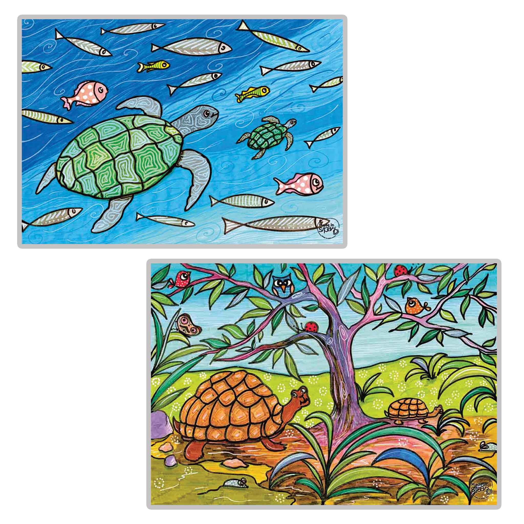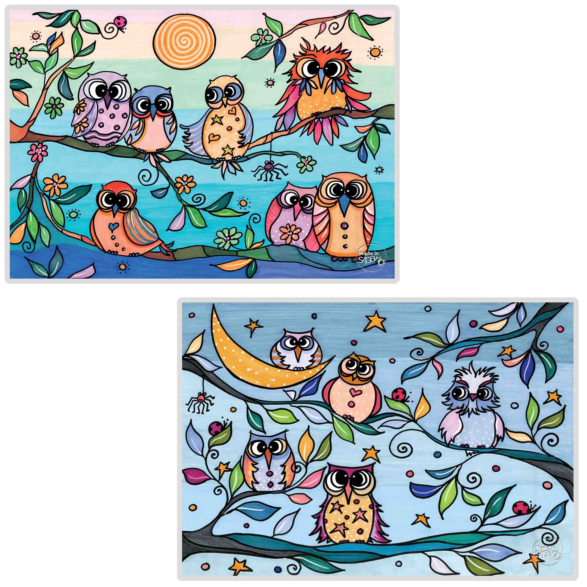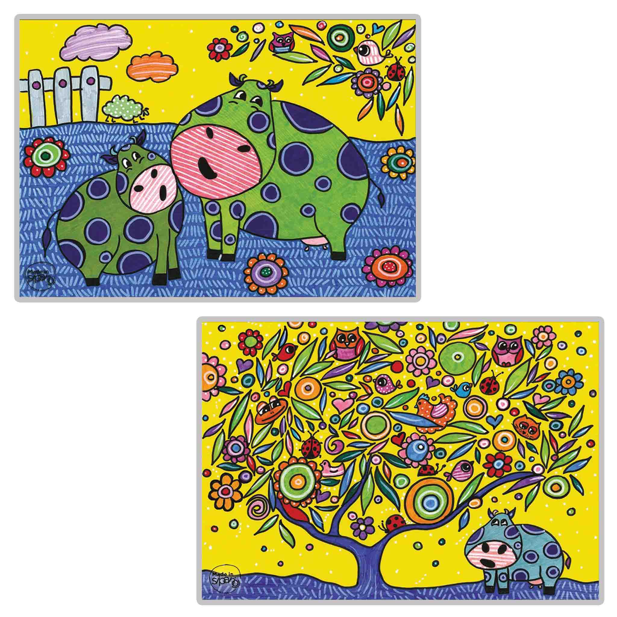 I disegni sono differenti su Fronte e Retro, con colori abbinabili fra loro.