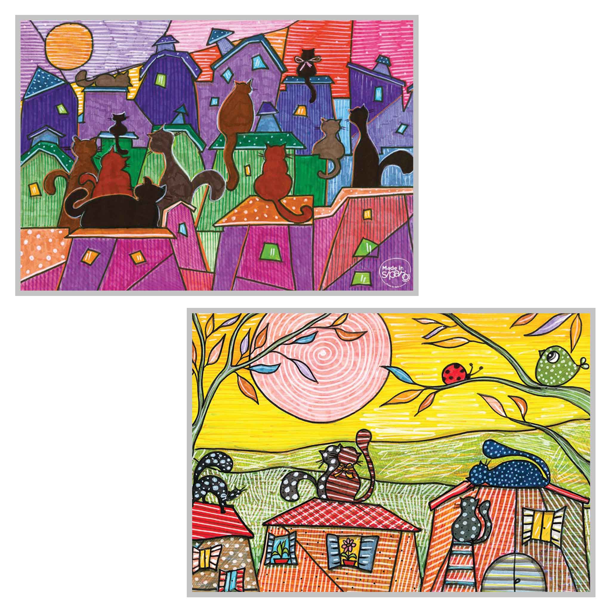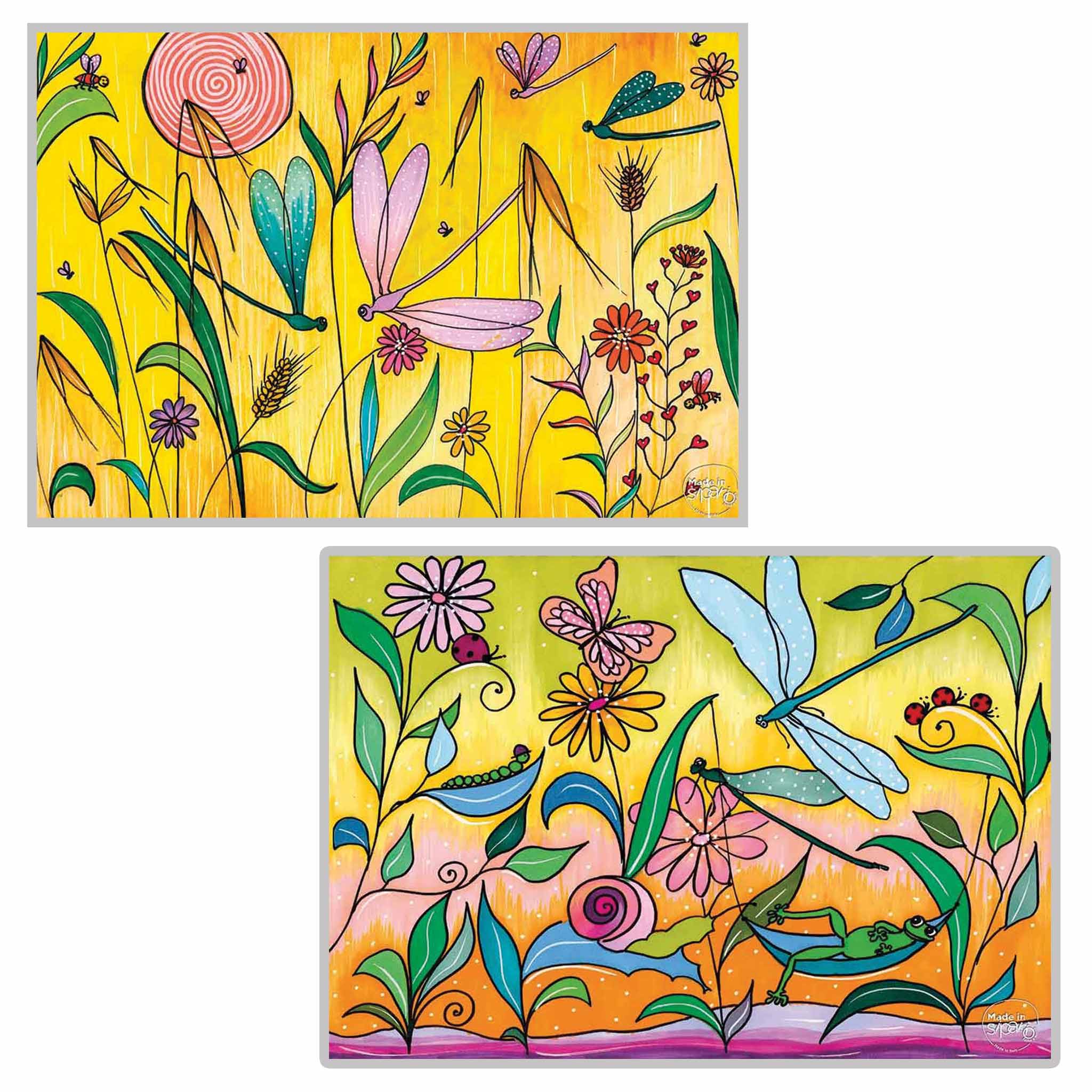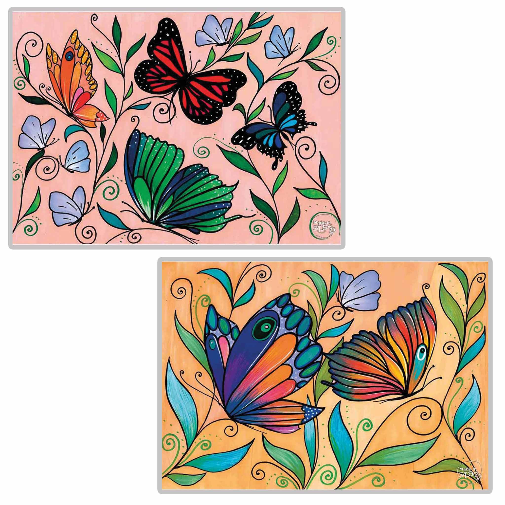I disegni sono differenti su Fronte e Retro, con colori abbinabili fra loro.
