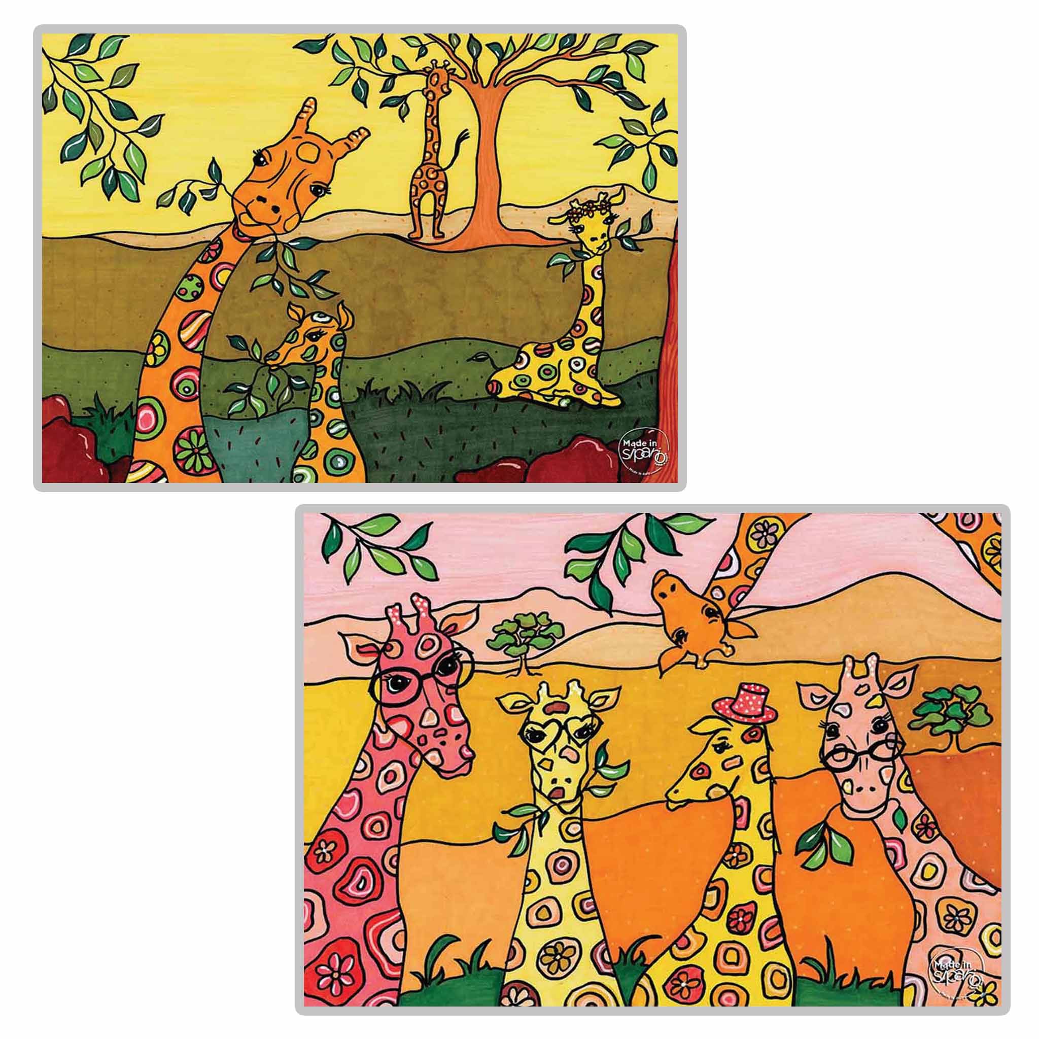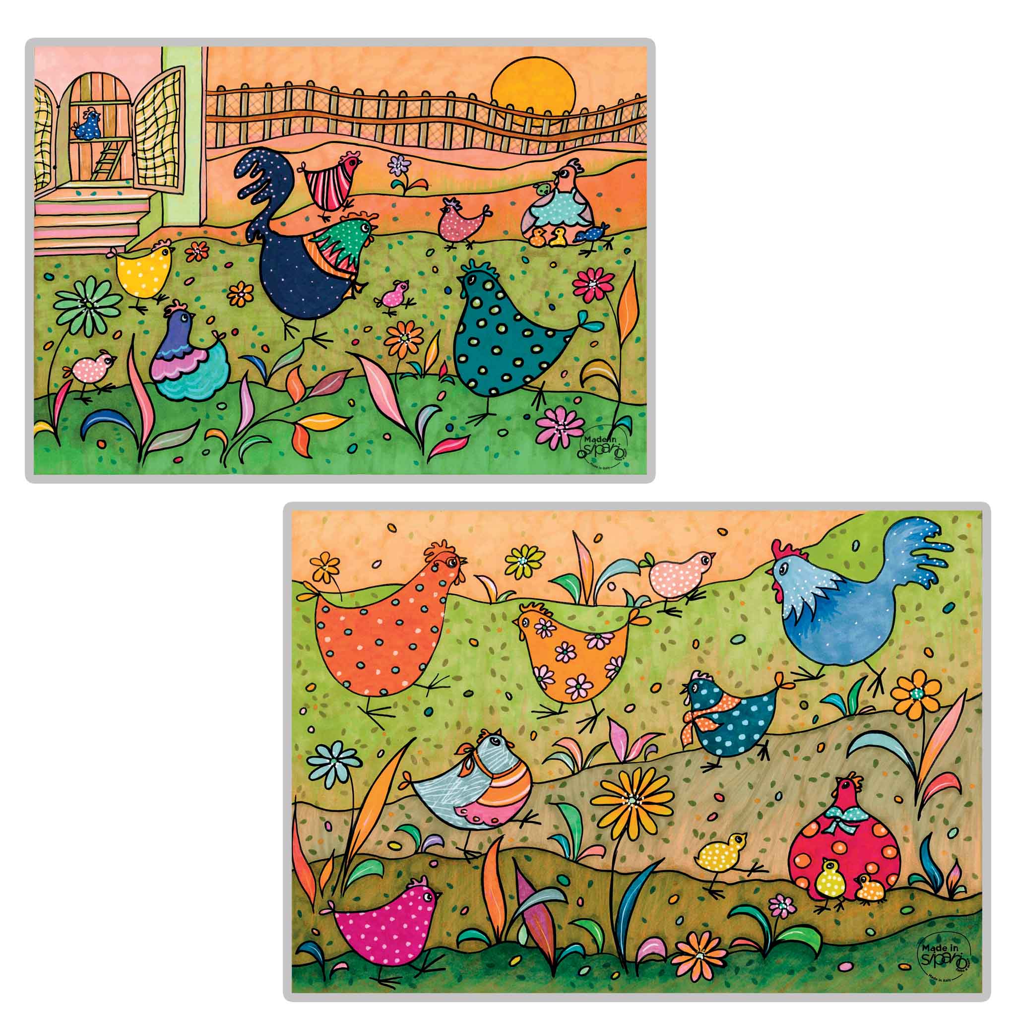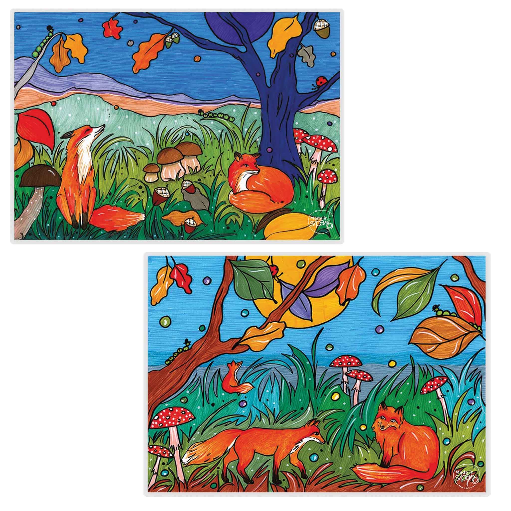 Ogni tovaglietta è realizzata in cartone, stampata a colori con fantasia originale Made in Sipario, plastificata in modo da renderla lavabile.