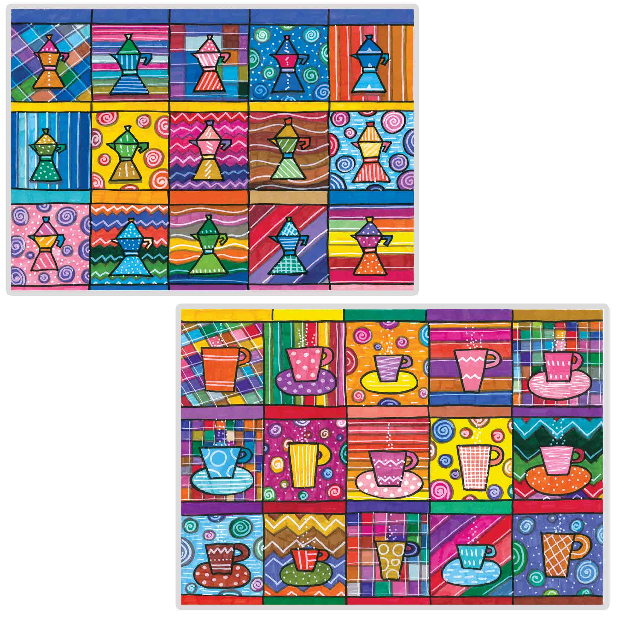 Ogni tovaglietta è realizzata in cartone, stampata a colori con fantasia originale Made in Sipario, plastificata in modo da renderla lavabile.