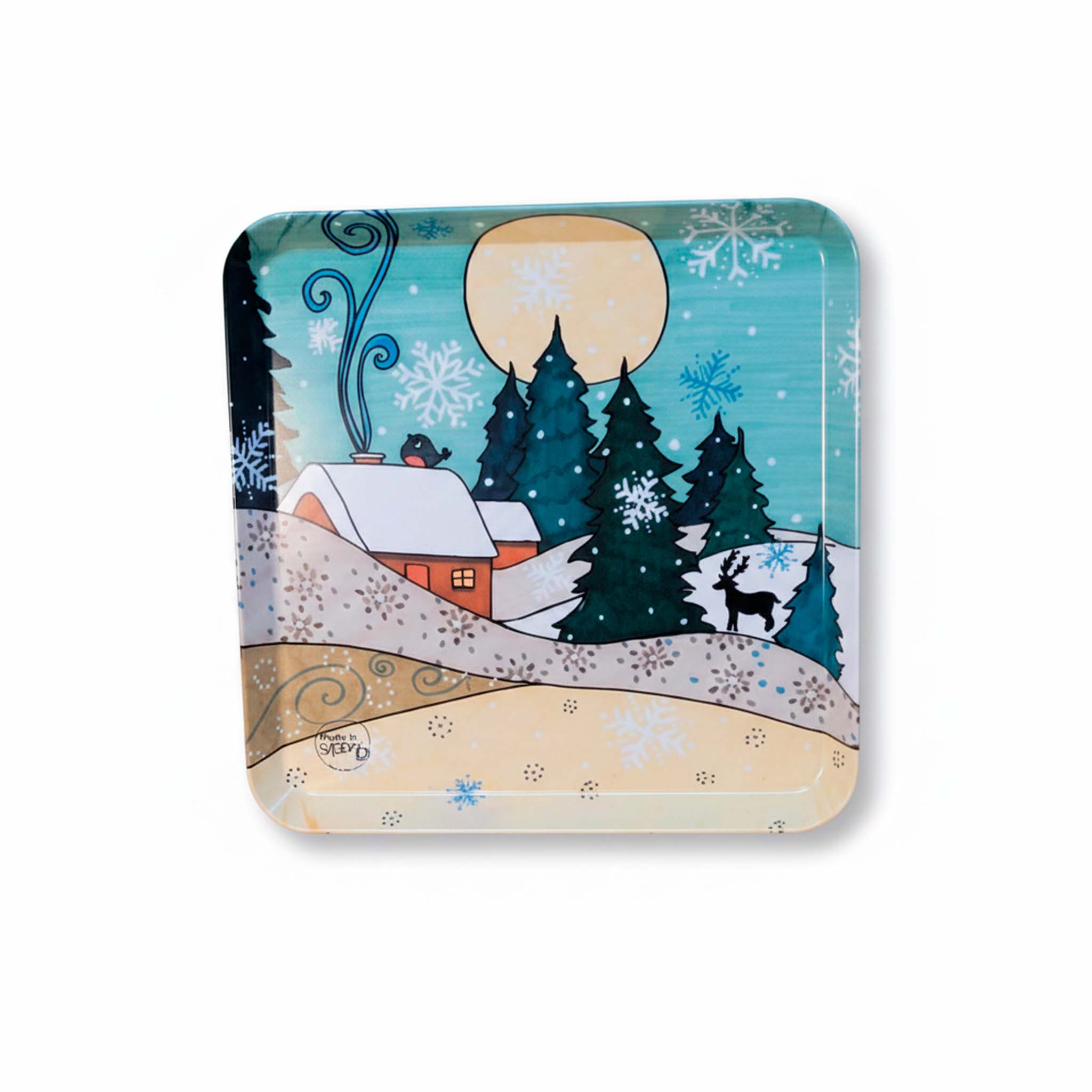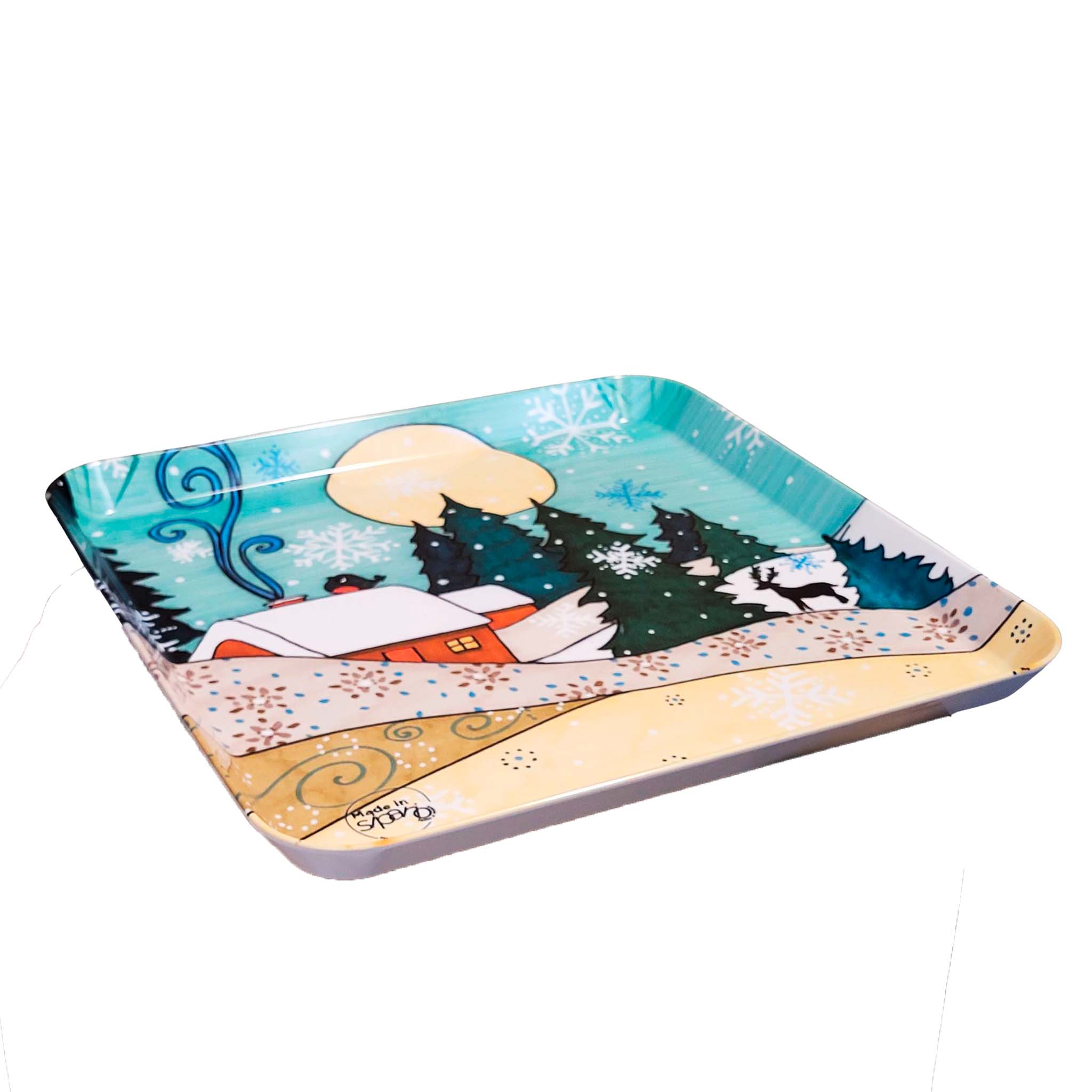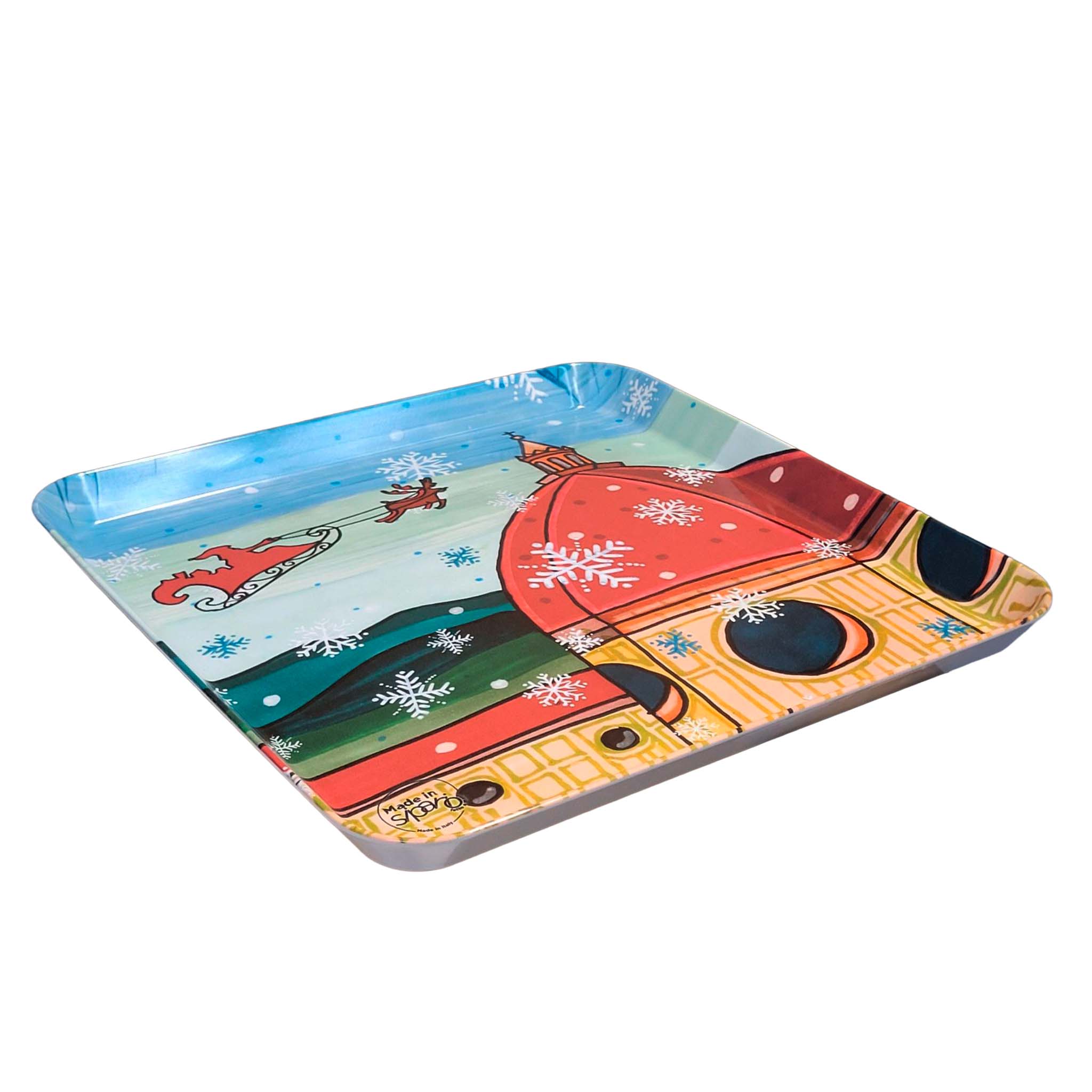 Il Vassoio Quadrato Linea Natale di Made in Sipario porta l'arte e la magia delle feste sulla tua tavola e nei tuoi ambienti. Riproduce i soggetti natalizi, come "Babbo Natale a Firenze" e "La casa di Babbo Natale", nei disegni originali dei nostri Artisti Speciali, realizzati con uno stile allegro, colorato e festoso.
