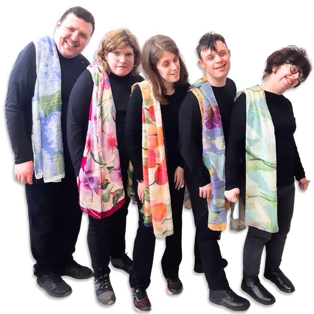 I notri ragazzi e ragazzi di Made in Sipario hanno iniziato a mettersi alla prova anche con la tecnica del cucito e per questo abbiamo pensato di arricchire la nostra offerta, proponendovi degli “Accessori Moda”, ideati e realizzati a mano dai nostri Artisti che non li hanno oslo deocrati, ma anche cuciti, sono i nostri FOULARD in tessuto 100% Modal.